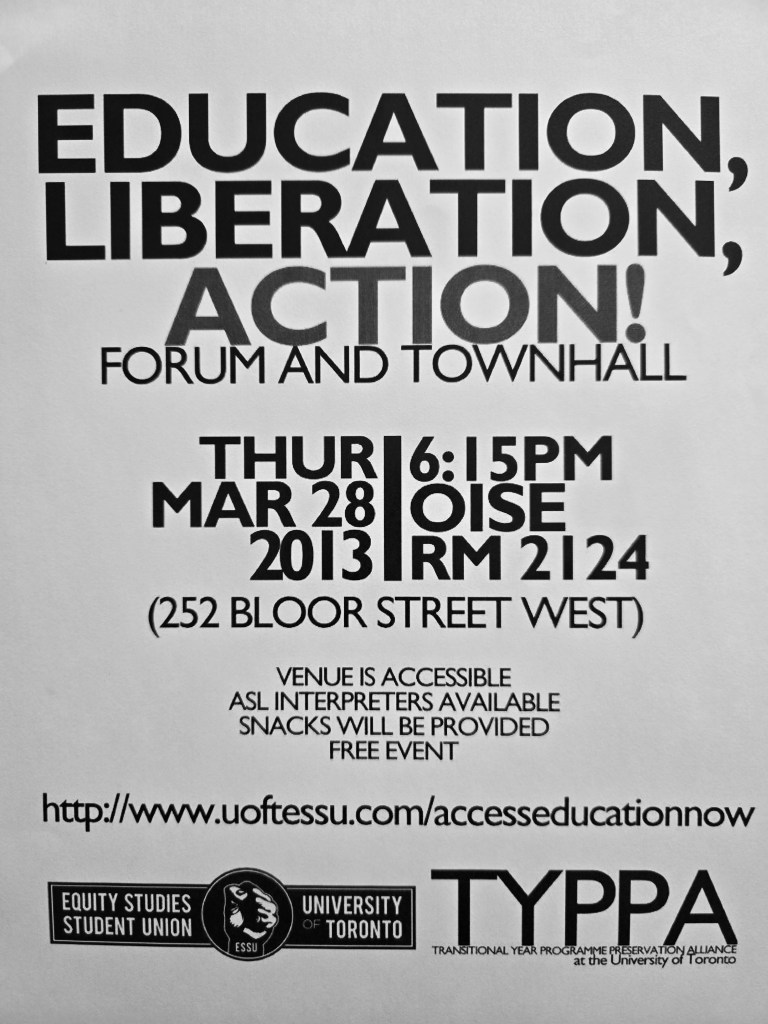 Our comrades moved to a place of revolutionary consciousness where they came to feel and believe that they have power. They moved to a place where they came to believe that we the oppressed have the power to resist oppression, to transform our world, and so they became SKOLAZ. They became People’s skolaz, skolaz of resistance, skolaz of historical and current liberation struggles and organizings on the part of the People and the oppressed starting first with their neighborhood and community of Regent Park and then extending their skolazship focus to community and collective organizings across the city and then nationally and then globally. And all of we as comrades intergenerationally came to an understanding that when we produce knowledge we do it collectively and so from the beginning we not only aligned ourselves and built relationships with revolutionary minded individuals and collectives on the ground who came to defend, collaborate and work with us, we also built close partnerships and collaborations with what we call 2 University ‘comrade programs’ that not only aligned with our aspirations, politics, and beliefs about liberation and what is POSSIBLE but they themselves came out of the struggles for liberation on the part of the People. These comrade programs were and are, the Transitional Year Program (TYP) at the University of Toronto and the Critical Studies in Equity and Solidarity program (CSES) in New College at the University of Toronto.